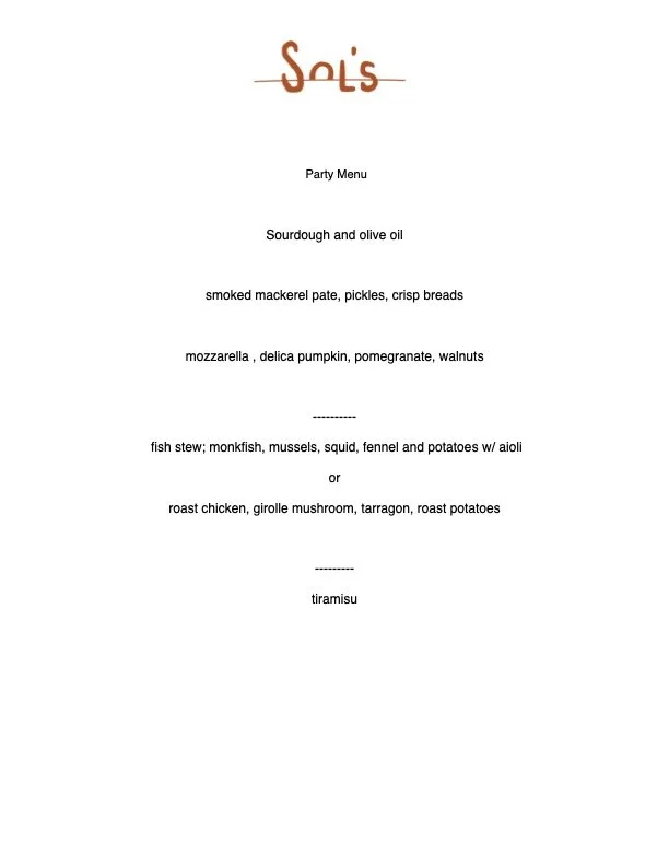 We welcome private group bookings and other events, typically for 10–35 guests in both Sol’s and Sol’s Sister.
