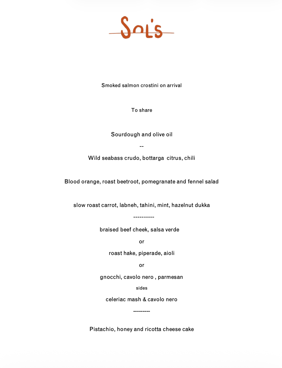 Sol’s Sister, our private dining room is available for hire in the evening, and our wine bar is available for lunches and daytime events.